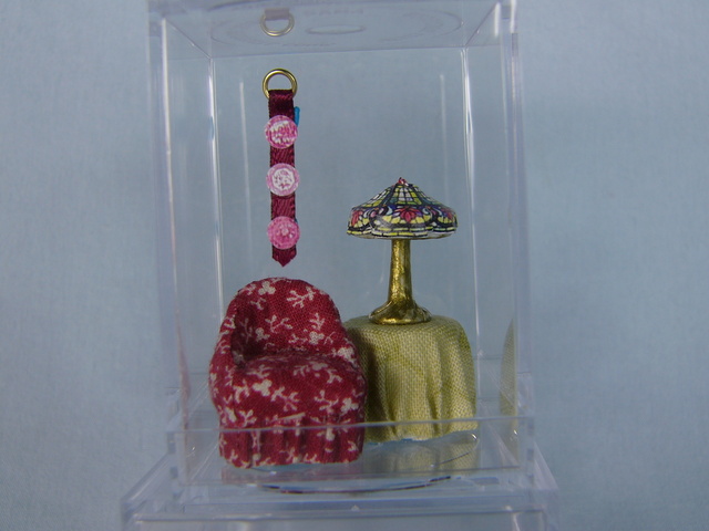 : Chair, table, hanging decoration $32