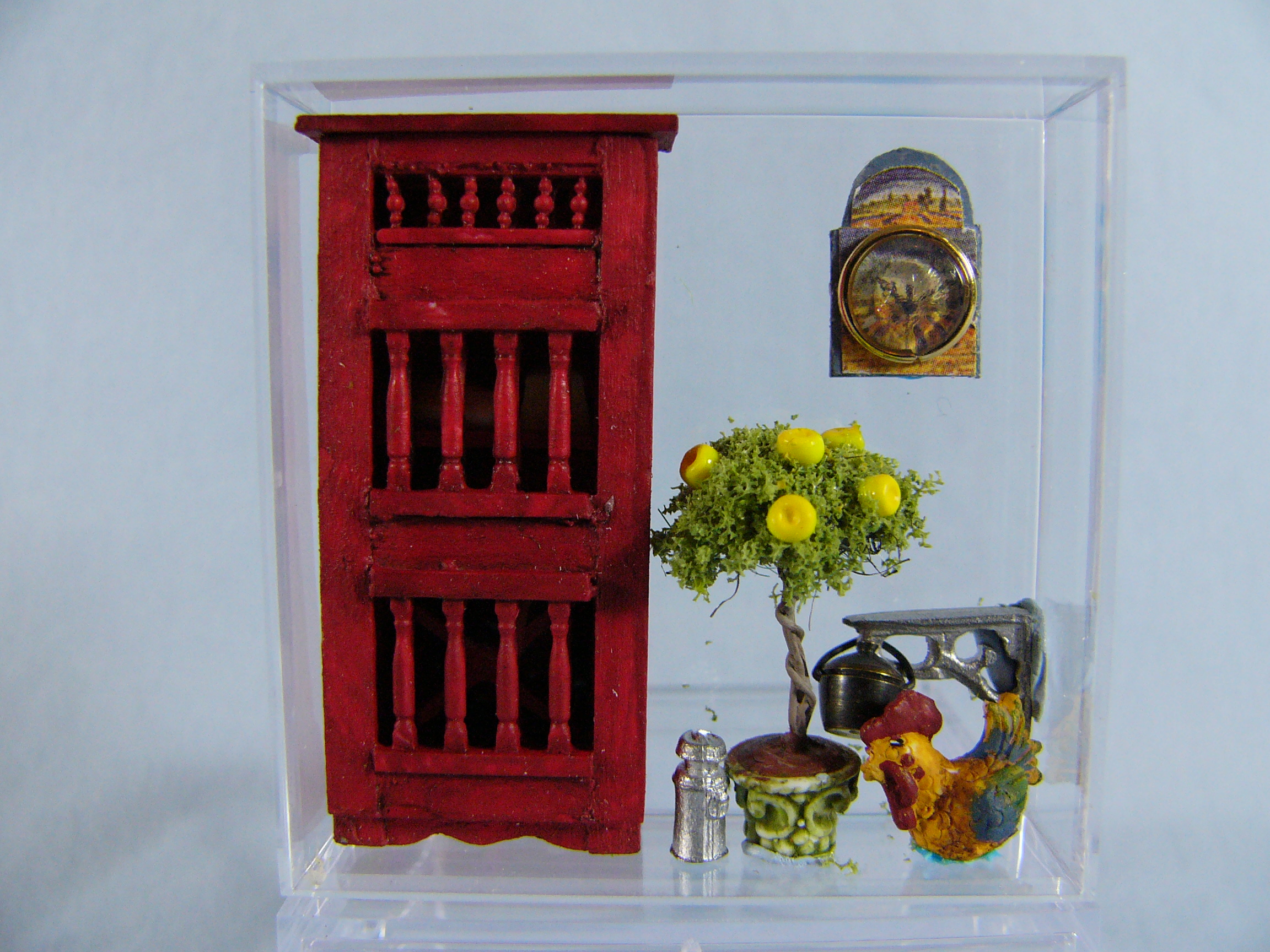 sue : retired : arch de provence : Cupboard, milkcan, lemon tree, hen, hanging pot, clock $54 |