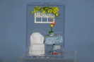 on the walls and a peaceful cool interior in white and light blue. The