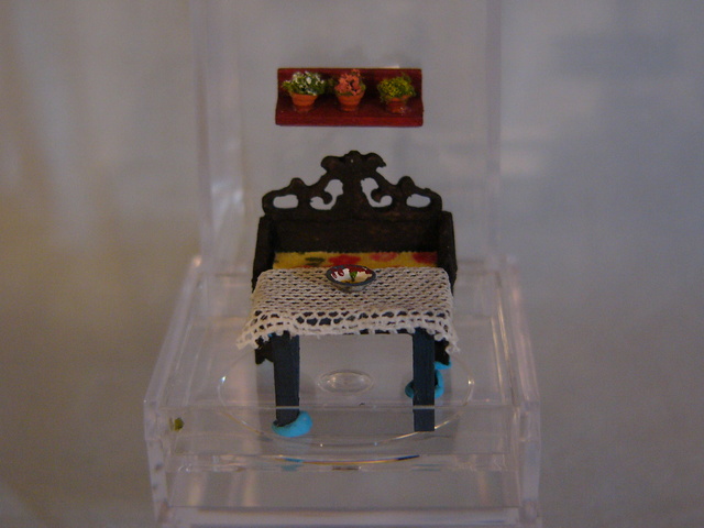 sue : retired : la petite maison : Bench, table, shelf ($36) |